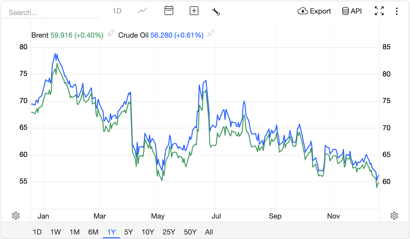 현재 국제 유가는 겉보기에는 일정한 범위 내에서 움직이고 있지만, 실제로는 매우 높은 변동성을 보이고 있는 상태입니다. 브렌트유 기준으로 배럴당 약 50 ~60달러 수준을 중심으로 형성되어 있으나, 단기적으로는 5~10달러 이상의 급등락이 반복되는 특징을 보이고 있습니다. 이는 단순한 시장 수급 변화라기보다는 외부 충격에 민감하게 반응하는 구조로 바뀌었음을 의미합니다.